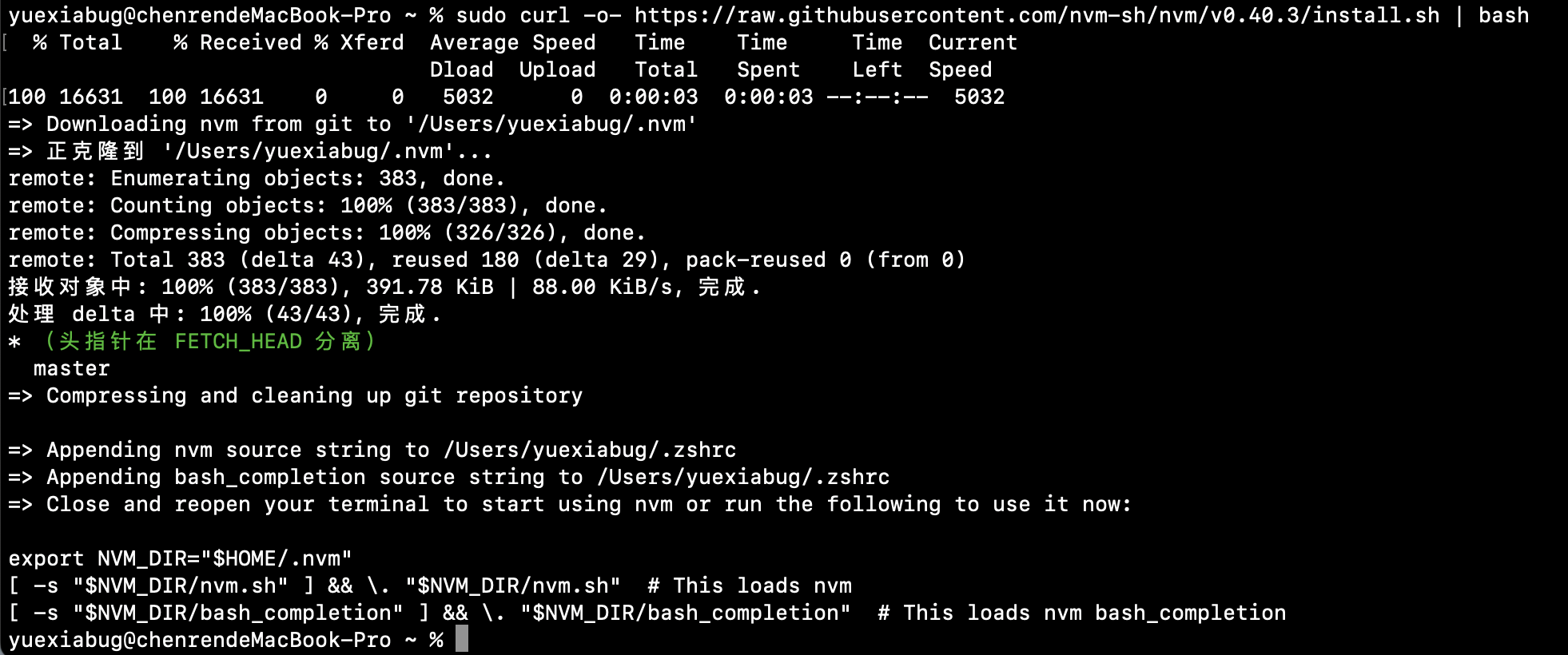 1 | curl -o- https://raw.githubusercontent.com/nvm-sh/nvm/v0.40.3/install.sh | bash |
